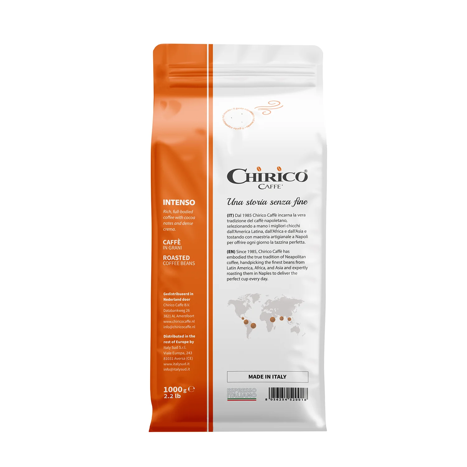 Chirico Caffè Intenso is een ode aan de Napolitaanse koffiecultuur. Met zorg handgebrand in Zuid-Italië, levert deze blend een krachtige koffie ervaring die elke ochtend tot een moment van puur genot maakt.