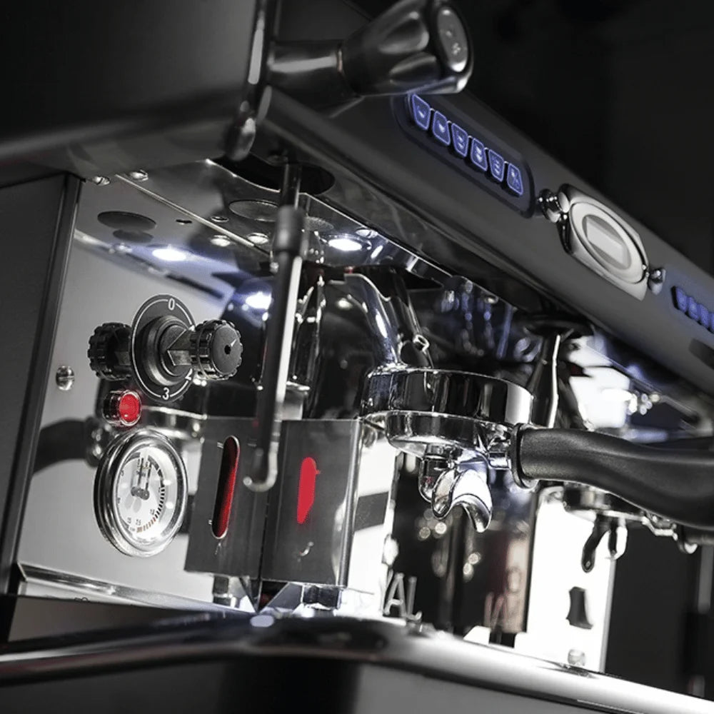Opties zoals automatische melkopschuimer, koppenwarmer en verlichting maken deze machine extra handig.